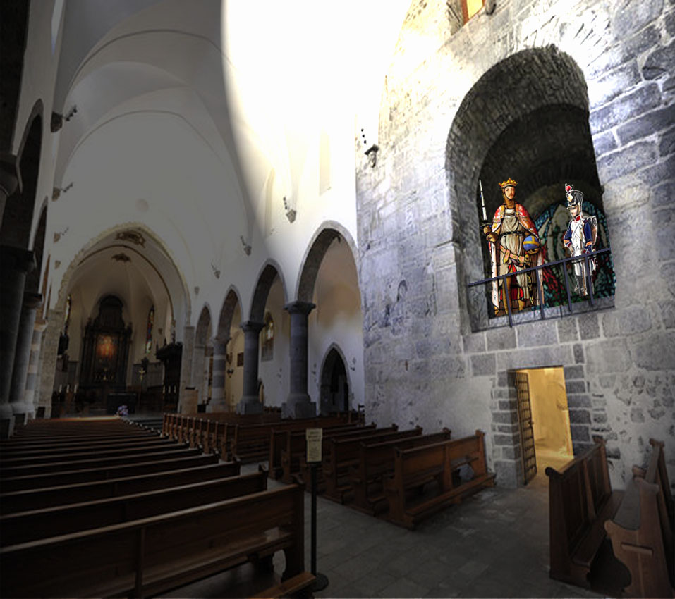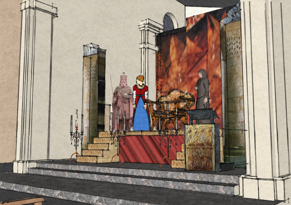 1er tableau : Eglise St-Sigismond : L'épopée commence par la scène tragique de l'infanticide qui entacha la vie du roi Sigismond, fondateur de l'Abbaye.