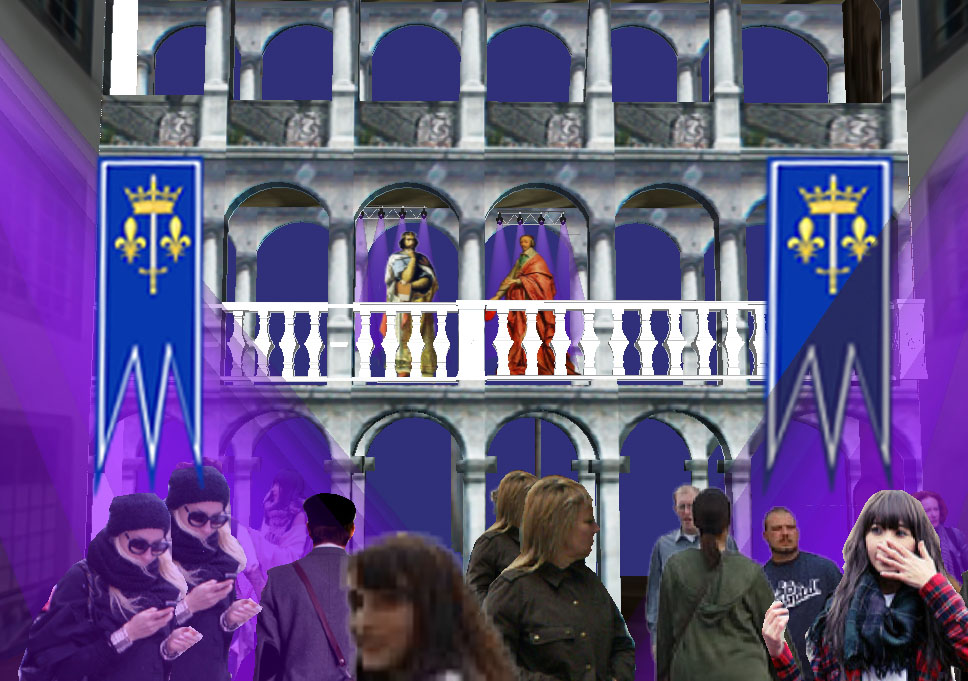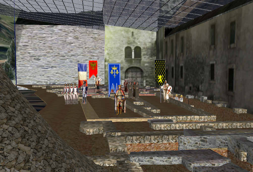 3e tableau : Maison de la Pierre : Le roi Saint Louis, animé par la foi, a demandé à l'Abbaye de lui apporter des reliques des martyrs. Il décide de partir pour une dernière Croisade afin de délivrer Jérusalem et trouver ainsi le salut.