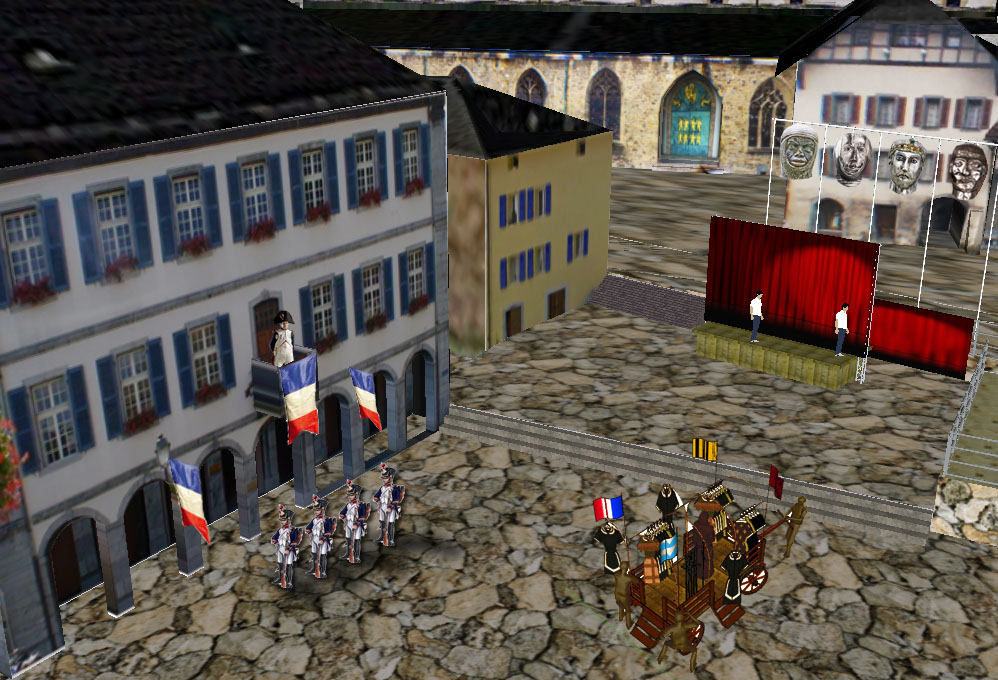 4e tableau : Place du Parvis : Napoléon Bonaparte, de passage à St-Maurice avec ses troupes, cherche à s'emparer du Trésor de l'Abbaye... Les citoyens d'Agaune lui présentent l'histoire des martyrs thébains, jusqu’à une spectaculaire décapitation. La disparition du Trésor met en fureur Napoléon : il ordonne à ses grognards de fouiller le public, qui se réfugie dans la Basilique.