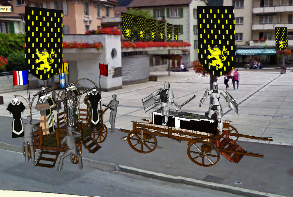 Ce parcours est effectué en compagnie d’un groupe composé de Romains, de Croisés, d’un ange et un chérubin, un diable et un diablotin, des misérables, Saint Victor et d’autres, et deux chars…
