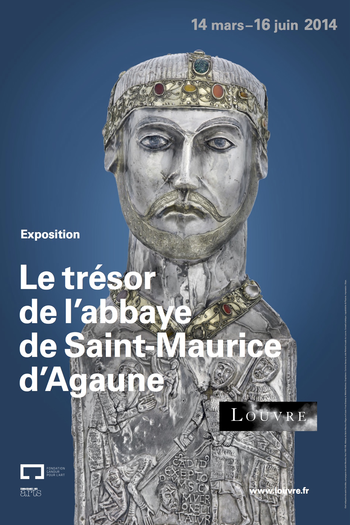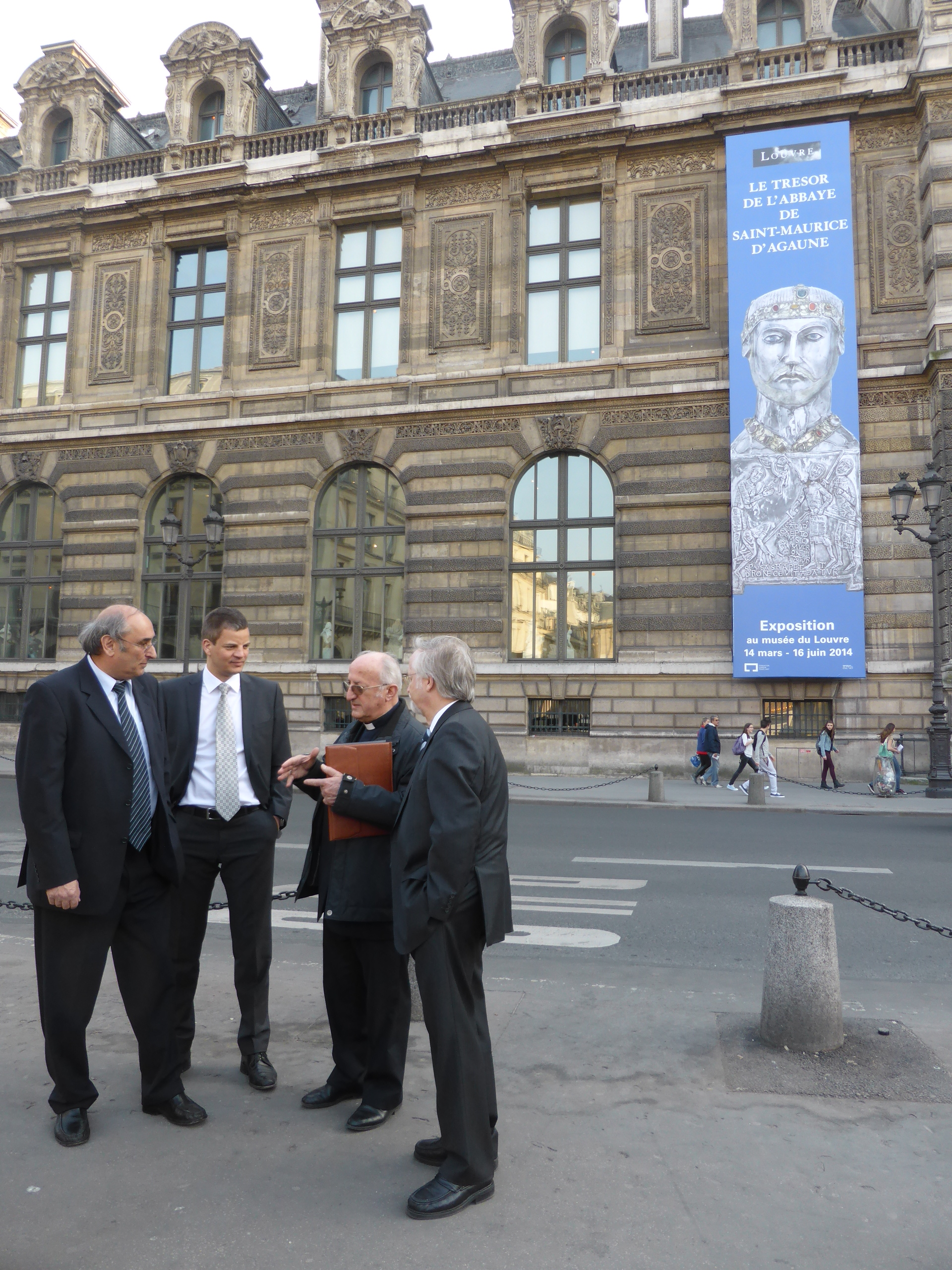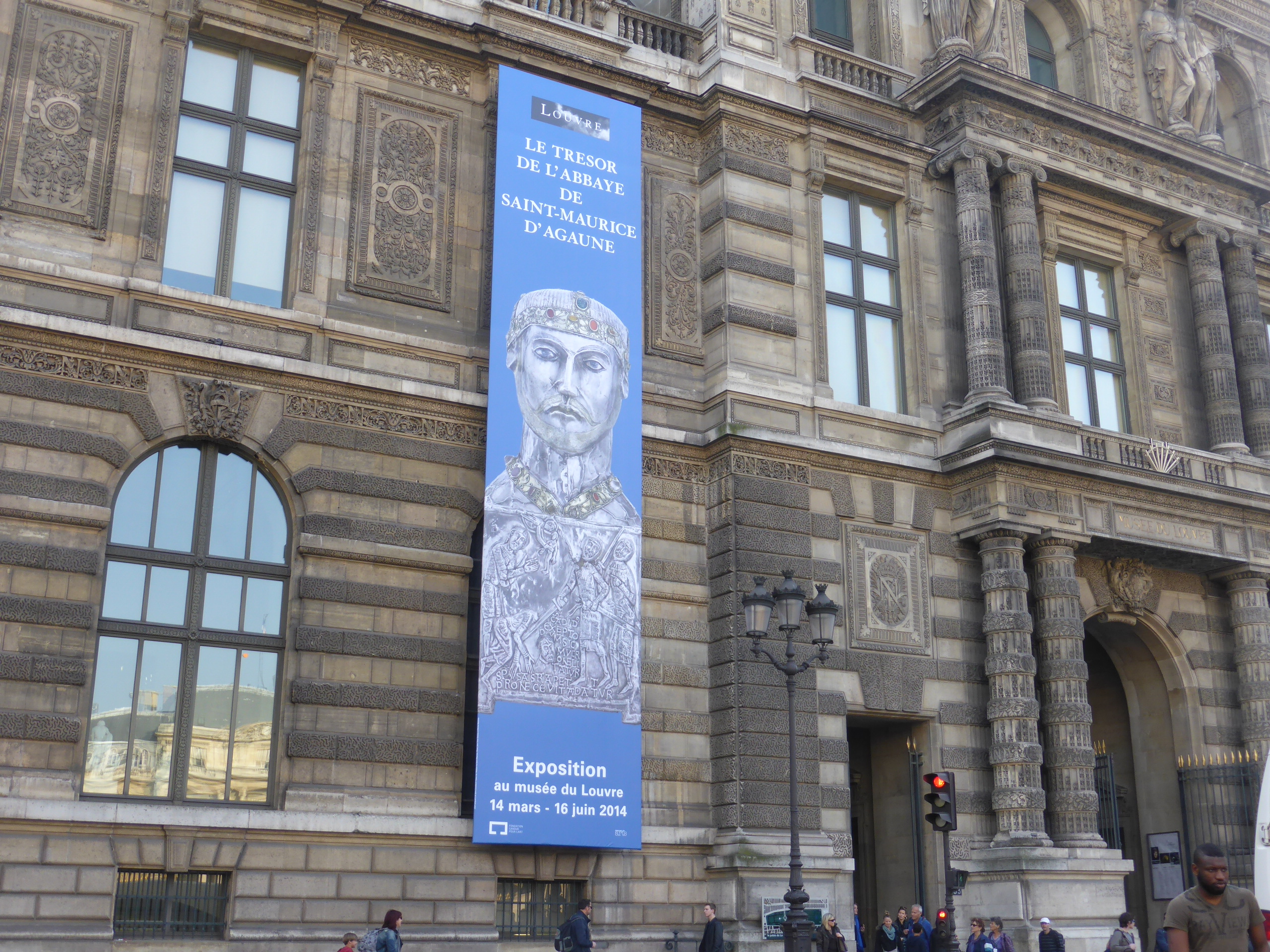 Ils s’en frottent encore les yeux, ces visiteurs qui se pressent en cette tiède fin d’après-midi du 12 mars devant la pyramide du Louvre. Entrés par la grande porte rue de Rivoli, sur une bannière de quinze mètres de haut, le chef-reliquaire de Saint Candide les a accueillis avec bienveillance. Le Trésor de l’Abbaye de Saint-Maurice d’Agaune, jusqu’ici gardé par les chanoines, est pour la première fois sorti de ses murs. Il se retrouve jusqu’au 16 juin 2014 dans cet espace qui a abrité les plus prestigieuses expositions du monde.